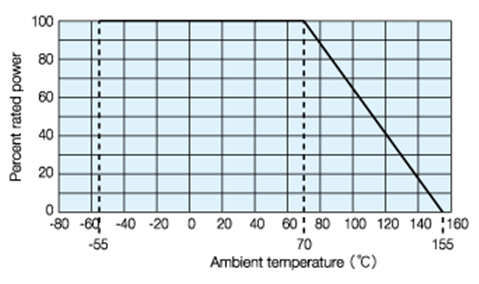 For resistors operated at an ambient temperature of 70oC or above, a power rating shall be derated in accordance with the above derating curve.