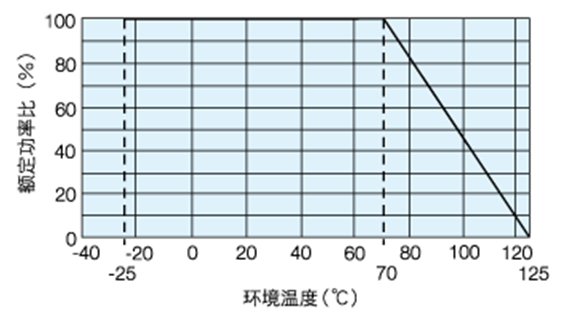 在環(huán)境溫度70°C以上使用時(shí),應(yīng)按照左圖負(fù)荷特性曲線,減小額定功率。