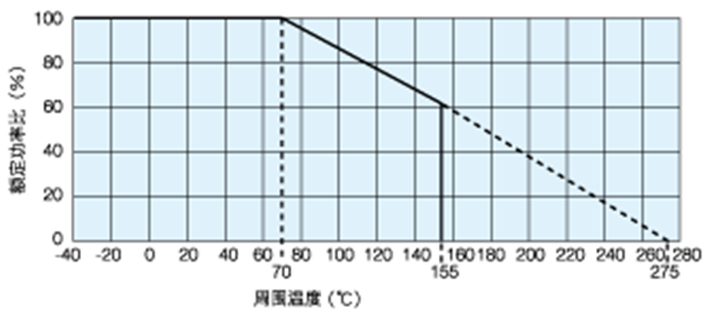 在環(huán)境溫度70°C以上使用時,應(yīng)按照左圖負荷特性曲線,減小額定功率。